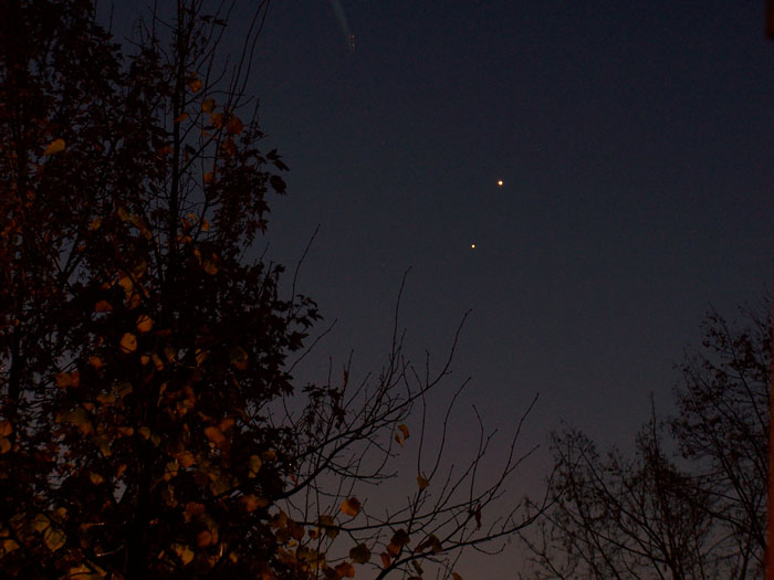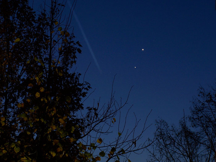 In den frühen Morgenstunden des 4. Novembers kommt es zu einer sehr engen Begegnung (0.6°) zwischen Venus und Jupiter.