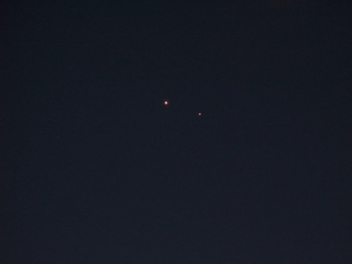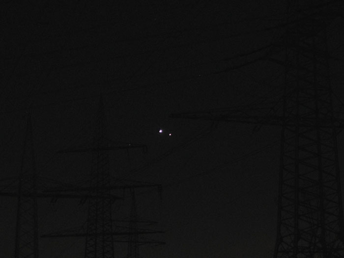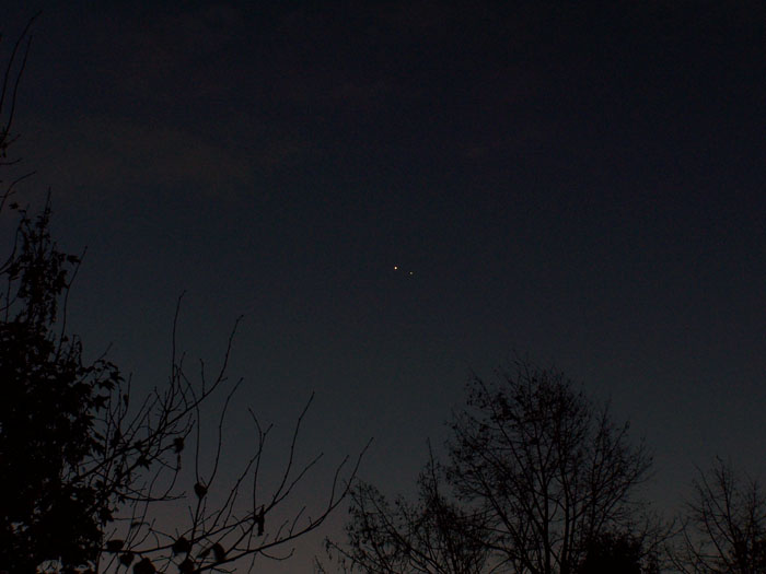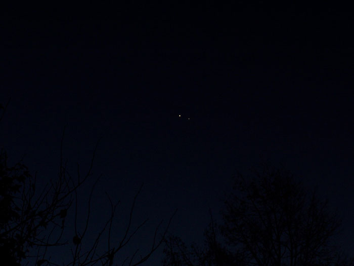Venus ist der hellere "Lichtpunkt" und steht oberhalb von Jupiter.