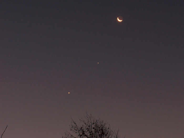 Am 10. November gesellt sich die schmale Mondsichel zu Venus und Jupiter.