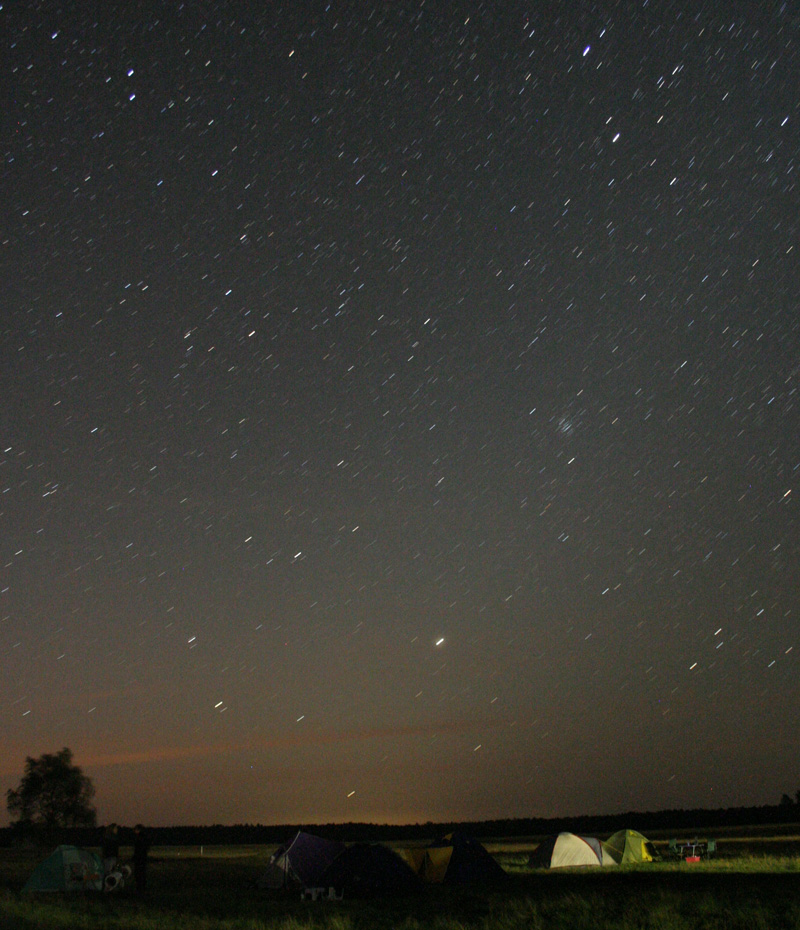 Der Platz liegt zwar etwas weiter östlicher und nördlicher als das Camp Reinsehlen (Luftlinie ca. 90km), bietet dafür aber erheblich weniger Lichteinflüsse. Das einzige Licht kommt von uns Teilnehmern selbst! Der Platz liegt praktisch auf einer dunklen Insel.