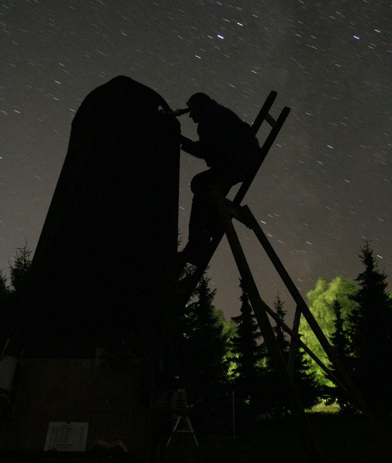 Bei klarem Wetter wird tagsüber die Sonne durch die verschiedensten Sonnenfilter(!) beobachtet und mit einbrechender Dunkelheit wird in die Weite des Universums abgetaucht − mit allem was es zu bieten hat, egal ob mit bloßem Auge, Fernglas, Kaufhausteleskop oder im 30 Zoll (∅ ca. 76 cm) Spiegelteleskop.
